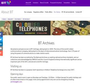 Acceso al Archivo Histórico de BT. http://www.btplc.com/Thegroup/BTsHistory/BTgrouparchives/index.htm