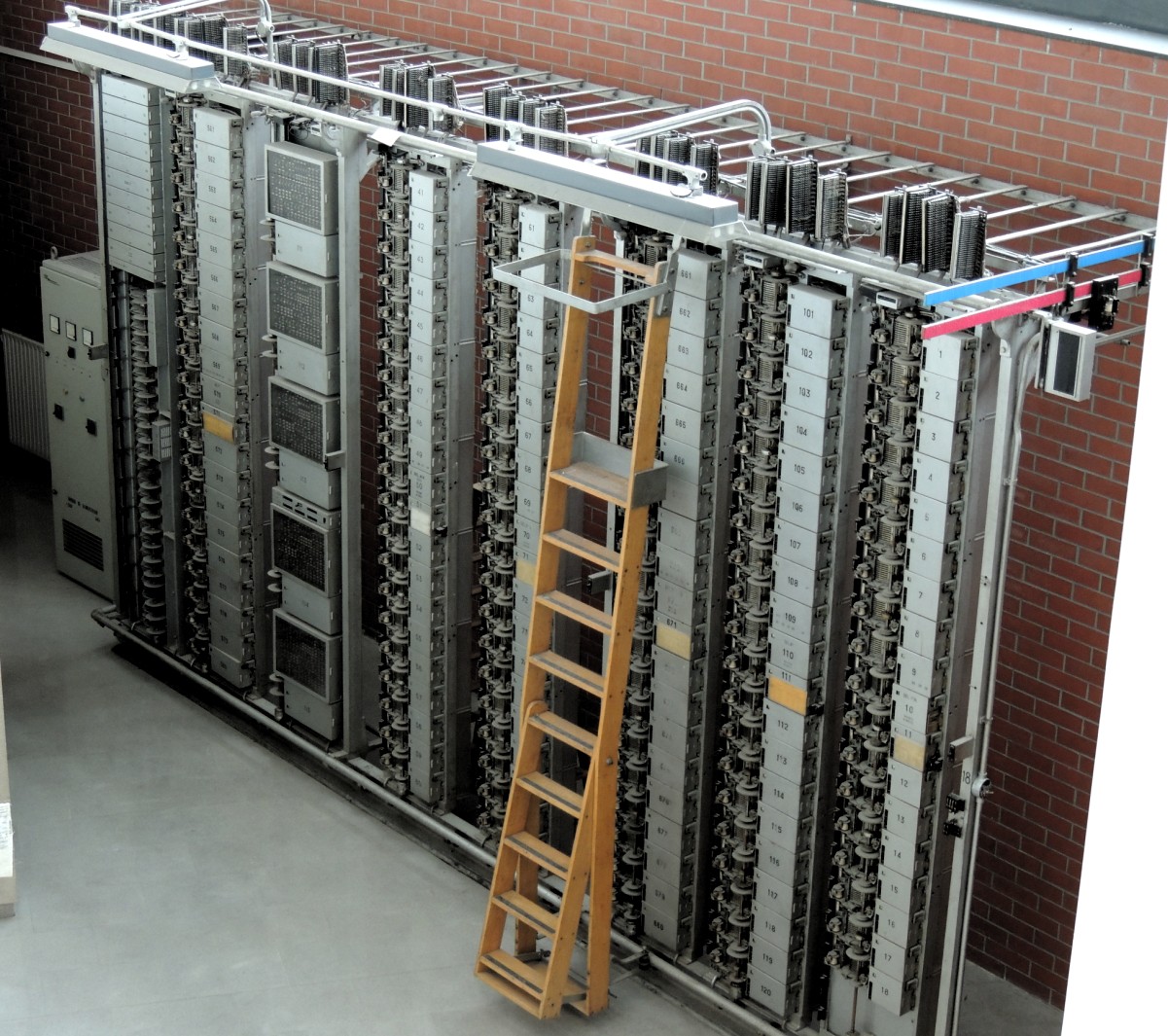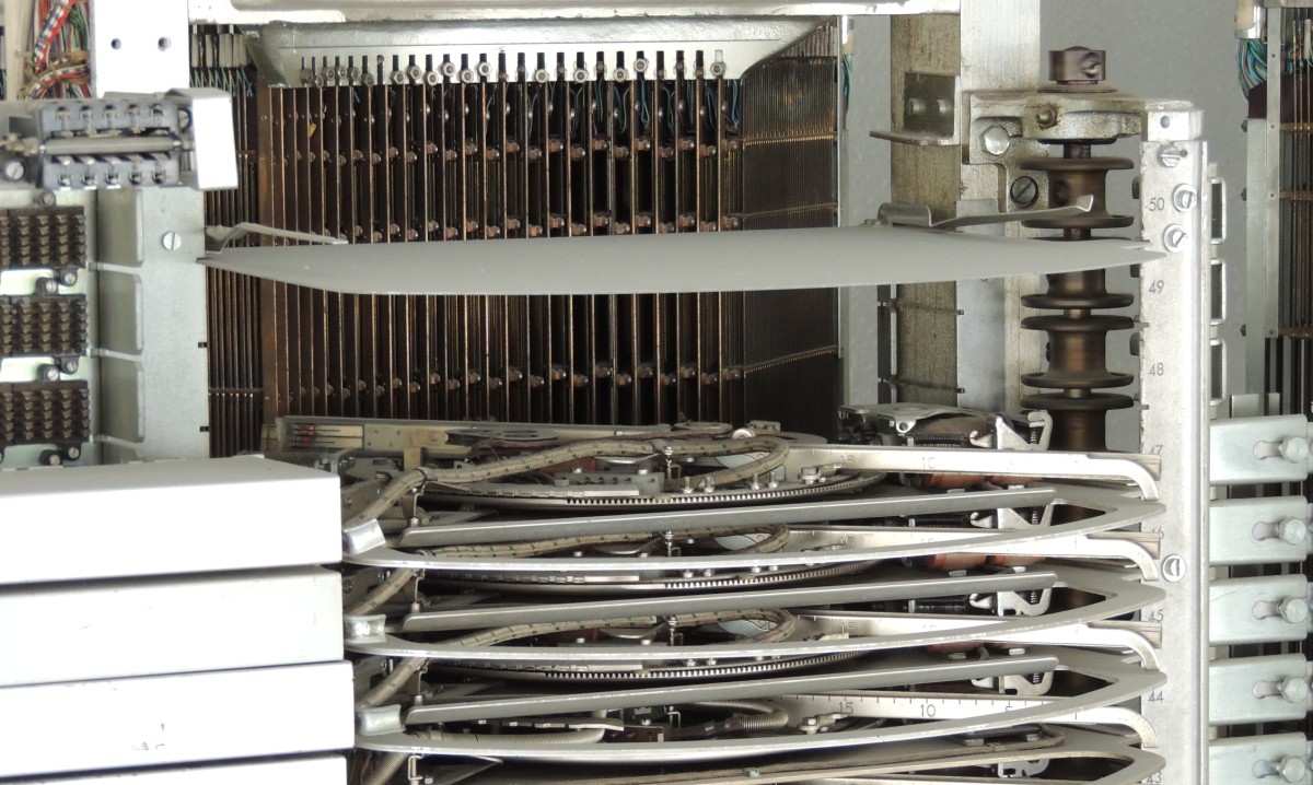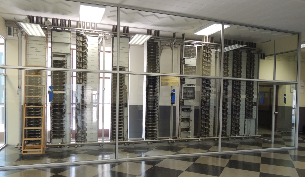 En este museo hay en exposición pública, una sección de central AGF de Ericsson con elementos de barras cruzadas.