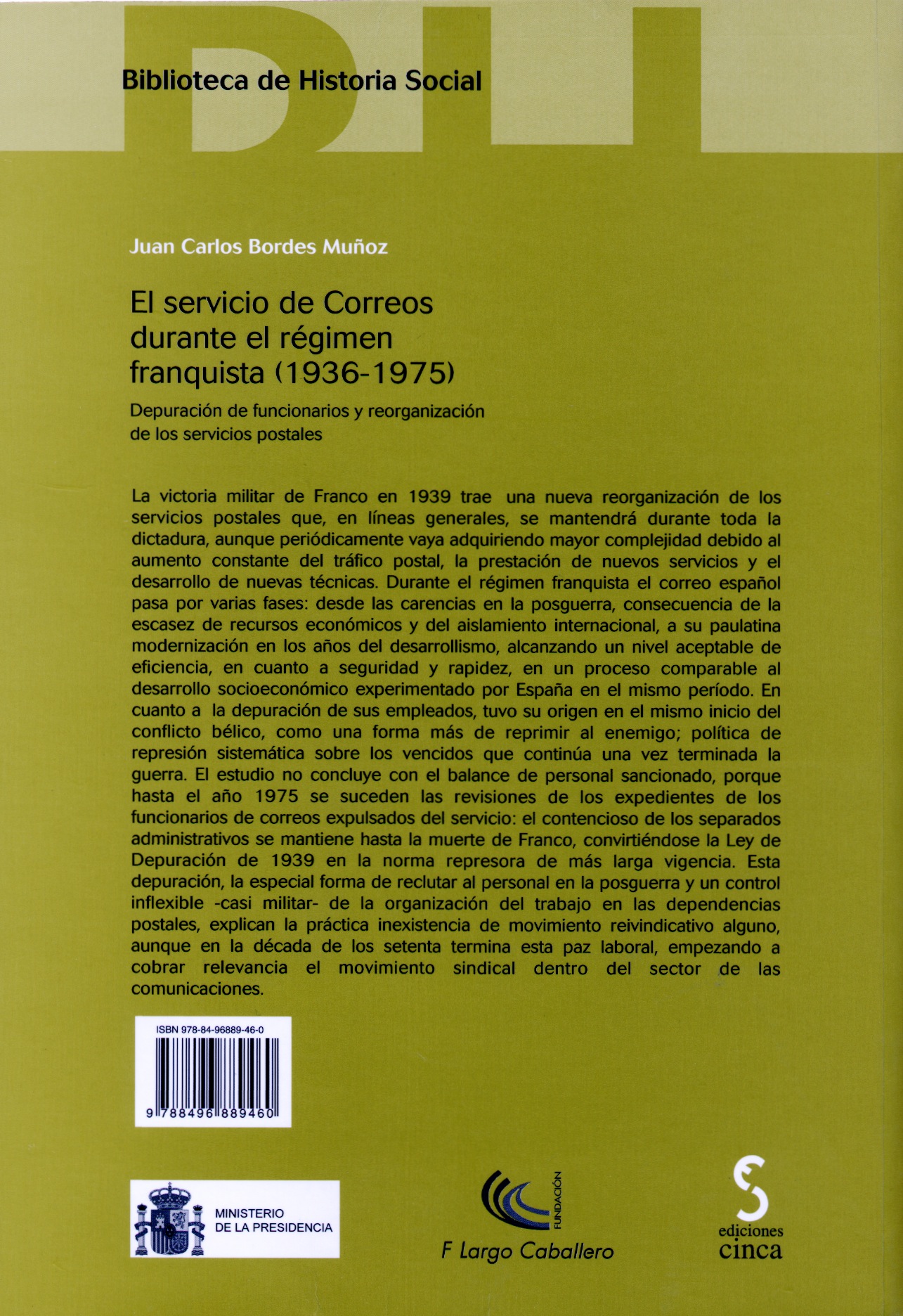 Resultado de un concienzudo proceso de investigación histórica sobre el control que el franquismo ejerció en uno de los sectores básicos de la Administración del Estado: Correos y Telégrafos. Juan Carlos Bordes, con una gran capacidad de indagación, ha buceado en el entramado de su organización resolviendo cuestiones como: ¿Por qué mostró tanto interés el régimen de Franco en imponer su absoluto dominio en el área de la actividad pública que garantizaba -o restringía- la capacidad de comunicación? ¿Por qué se emprendió el más importante proceso de depuración de toda la Administración del Estado dentro de un cuerpo como el de Correos y Telégrafos, poniendo en entredicho el propio mantenimiento del servicio con la aplicación de un complejo mecanismo depurador que afectó a un tercio de su plantilla?