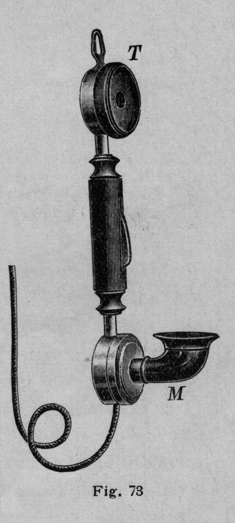 Así después de contarnos «cómo se engendran y reconocen las corrientes eléctricas», y las leyes de la corriente continua, en el capítulo tercero que dedica a las «acciones magnéticas de la corriente eléctrica», después de hablar de electromagnetismo, conductibilidad magnética, electrodinámica, etc, pasa a comentar las aplicaciones relacionadas con dichos fenómenos citando los timbres e inmediatamente a partir de la página 61 y hasta la 79, el Telégrafo y el Teléfono.