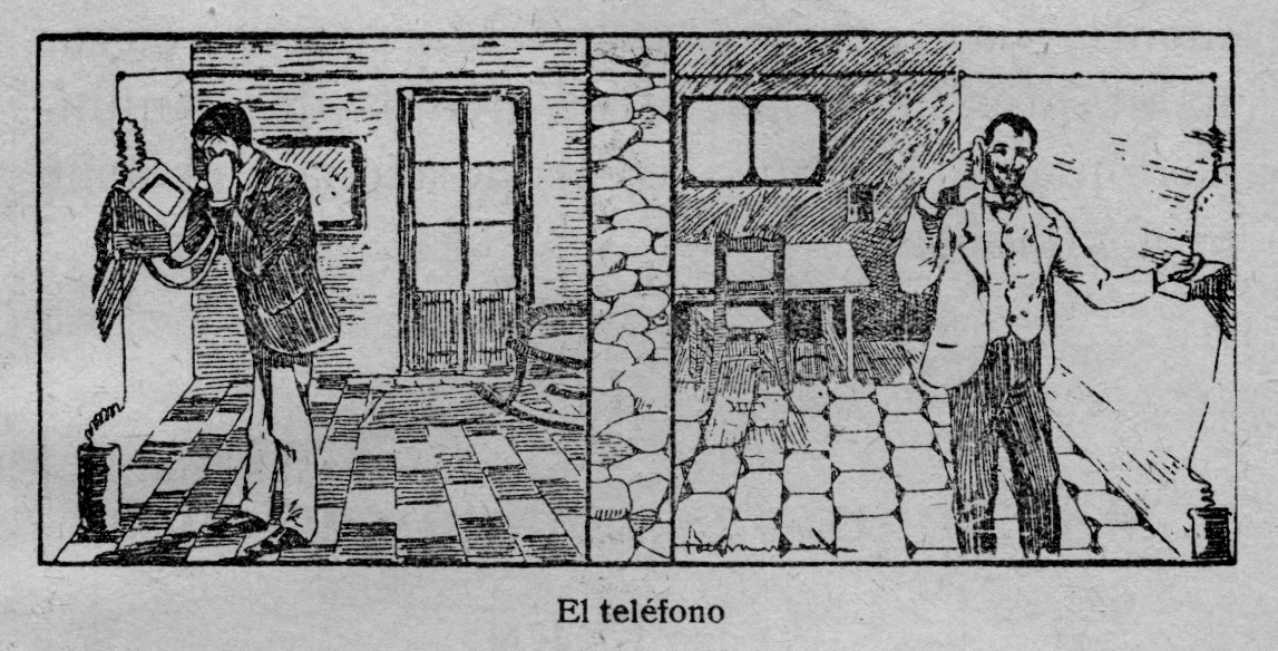 Concretamente se dice: «El telégrafo, el teléfono y el cable transmiten, en pocos minutos, nuestras palabras de un continente a otro». No dudamos que unos pocos minutos se necesitasen para completar un proceso telegráfico intercontinental, pero es sin duda incorrecto en el caso de una conversación telefónica, incluso en aquél entonces (excluimos por supuesto, el tiempo de demora en disponer de la conferencia) y desde luego no ayuda la ilustración que se acompaña, de una aparente conferencia entre vecinos, con lo que parecen unos aparatos de batería local. Y finalmente, queda sin aclarar ¿que es el cable?, cuestión que no sólo queda abierta al final del capitulo sino que además se plantea ¿para qué sirve?.El teléfono Dalmau 1930