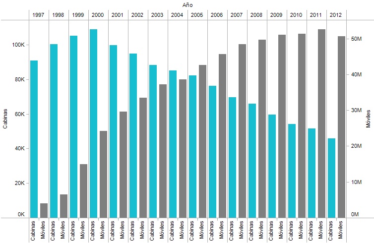 Datos del crecimiento de las cabinas versus los móviles en cnmcblog.es