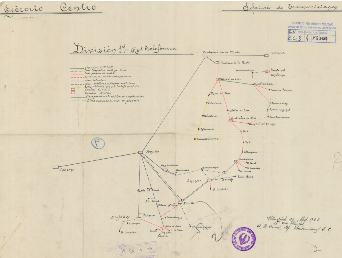 Gobierno de España. Ministerio de Defensa. Archivo General Militar de Ávila. Proyecto de Red Telefónica del Ejército Republicano. Signatura C810_8 (año 1938)