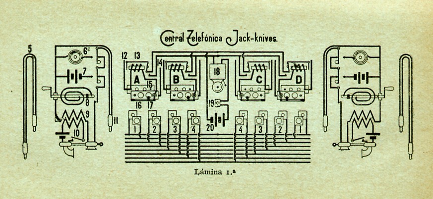 Esquema Central Jack-knives Lám, 1 «Centrales Telefónicas» 1918