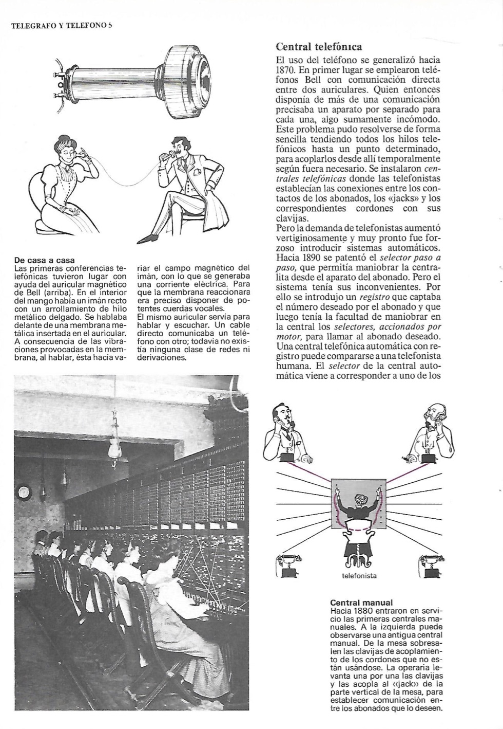 La obra dedica ocho completas y muy ilustradas páginas a la Telegrafía y la Telefonía. Lo podeis disfrutar al completo aquí COMBI Telégrafo y Teléfono