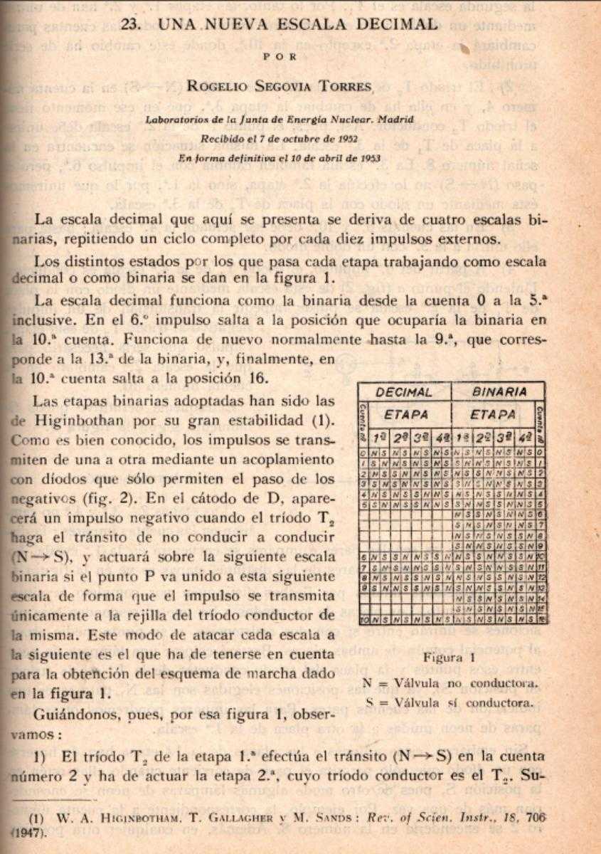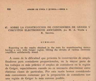 VIGÓN, M.A..; SEGOVIA, R. (1948). “Sobre la construcción de contadores de Geiger y circuitos electrónicos asociados”. Anales RSEFyQ, 44A, 686-689.