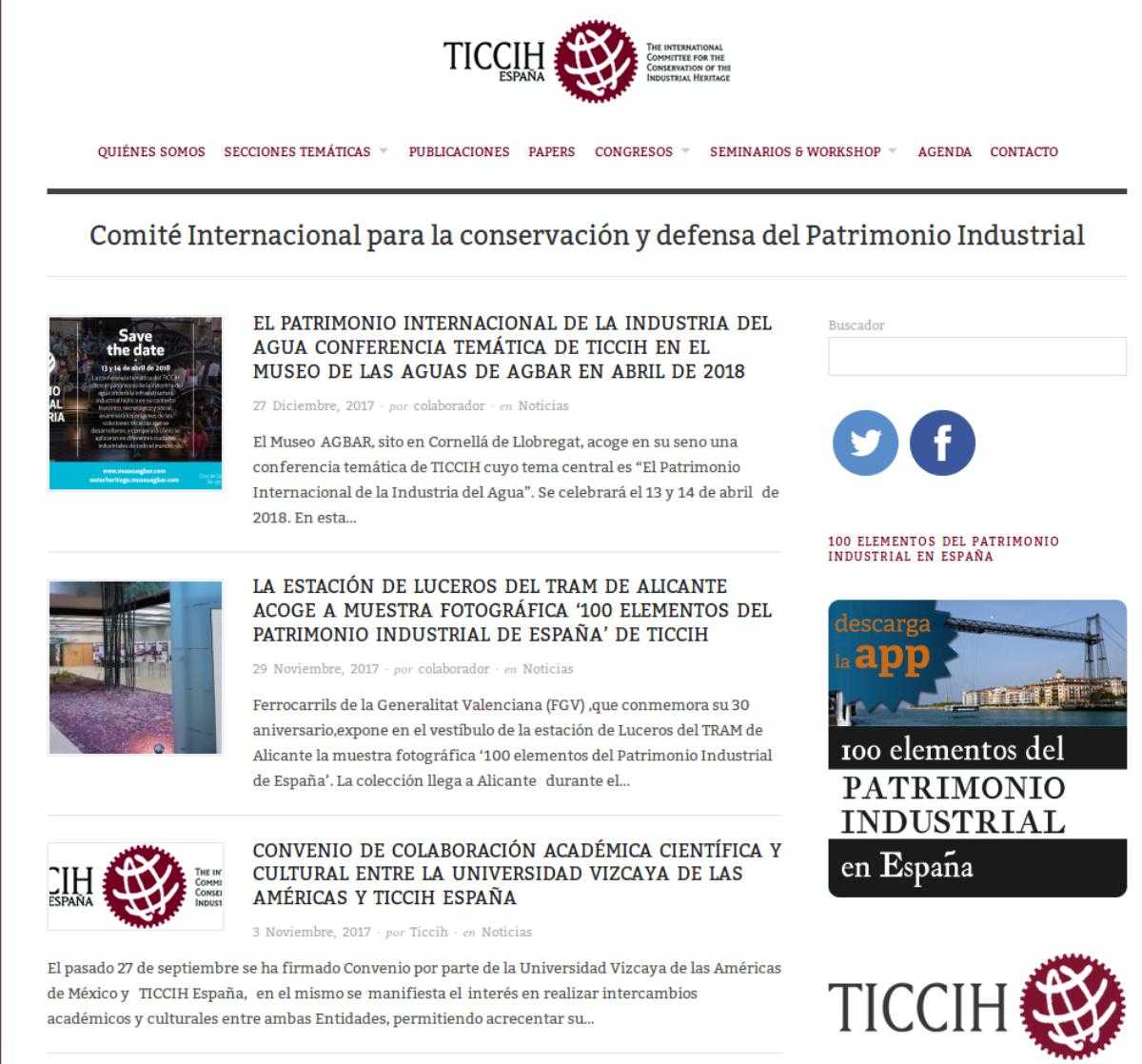 TICCIH España es la sección española del The International Committee for the Conservation of the Industrial Heritage (Comité Internacional para la conservación del Patrimonio Industrial). Os recomendamos la visita a su página web, TICCIH España