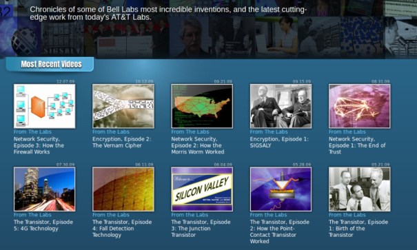 Hay videos sobre la propia historia de la ATT, de los laboratorios Bell, sobre la historia tecnológica de la conmutación,. los orígenes del sistema operativo UNIX, sobre la formación de los empleados, sobre los comienzos de la televisión usando la red telefónica, sobre la historia de gran variedad de dispositivos electrónicos, especialmente sobre los orígenes del transistor, sobre el comienzo de la automatización y fin de las centrales manuales, sobre los primeros ordenadores, entrevistas con visionarios como Arthur C. Clarke, John R. Pierce o premios Nobel en física como Arno Penzias o Robert Wilson. En fin una auténtica maravilla.
