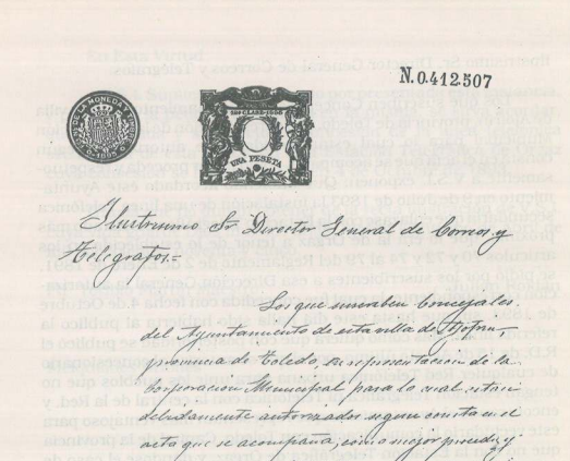 Parte del escrito de solicitud de teléfono para la localidad de Ajofrín- La tercera parte no es menos interesante, ya que incluye recortes y transcripciones de periódicos con noticias sobre el tema, desde 1891 hasta 1908, y luego una información de la Diputación Provincial de Toledo de 1960.