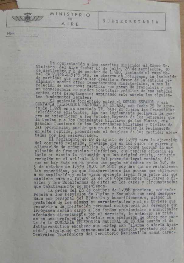 ahea036-N00961-04.pdf Litigios entre CTNE y el Ministerio del Aire por el uso de líneas telefónicas, febrero 1941