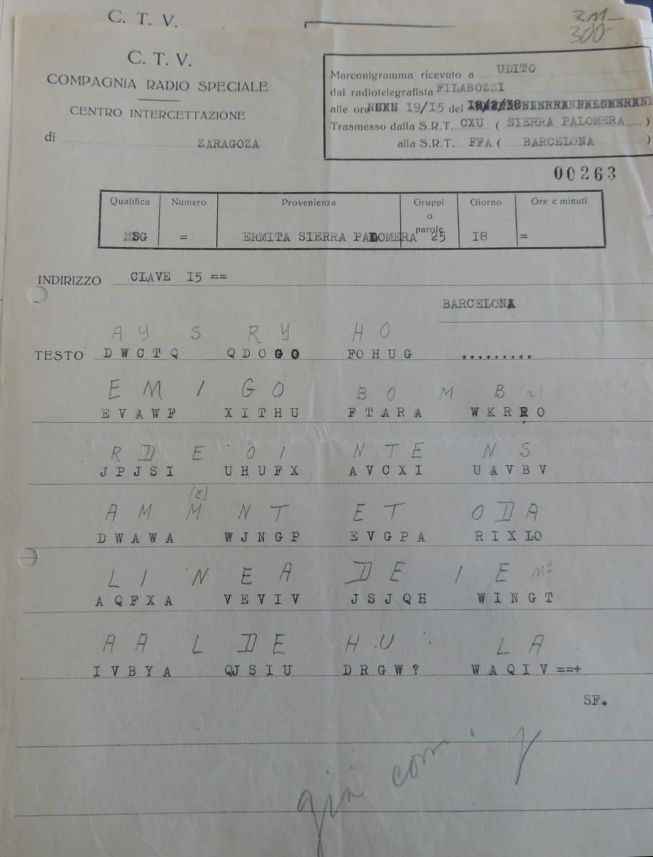Radiogramas cifrados del bando republicano captados por el CTV italiano, 1938, AHEA SigA00122