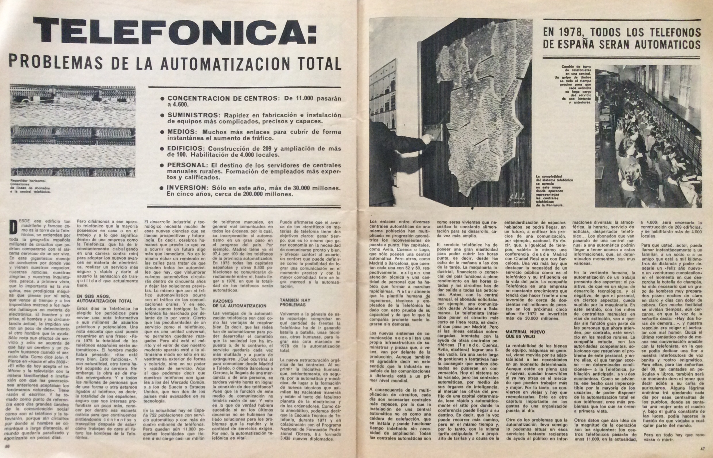 Se afirma que, según anuncio de aquella fecha, Telefónica preveía conseguir en 1978, seis años después, la automatización completa de todas las líneas telefónicas del país.
