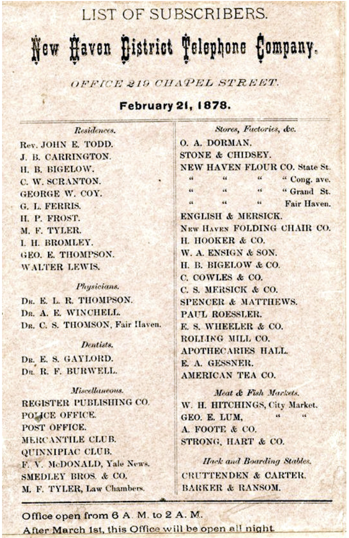 (3) La génesis de la estadounidense Spanish American Telephone Company en: López Rodríguez, Armando (2016): “La aventura empresarial en Europa de un pionero de la telefonía en Baltimore”. Revista de Historia Industrial, 63, pp. 109-132. Ver aquí.
