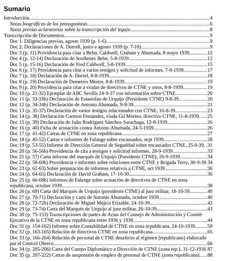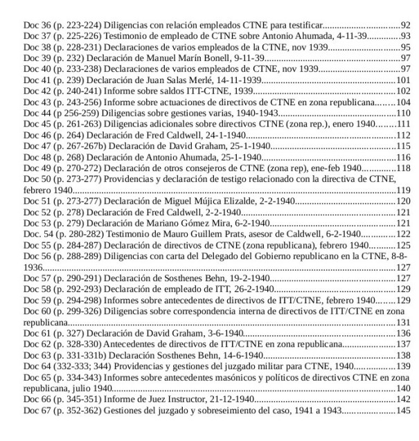 – Transcripción de partes de actas del Consejo de Administración de la CTNE en zona republicana que supuestamente demostrarían la connivencia de la dirección de la empresa con el Gobierno Republicano;