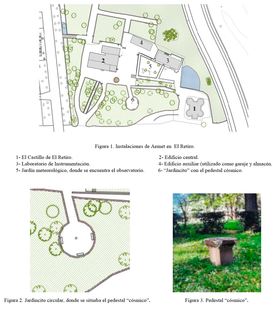 En el segundo, pinchando aquí, descubriremos la faceta astronómica y los experimentos de medición de la radiación cósmica realizados en 1936 en el madrileño recinto de El Retiro por Arturo Duperier Vallesa (1896-1959) físico y catedrático, que fue Meteorólogo y Jefe de Investigaciones Especiales del Servicio Meteorológico Nacional. Como testimonio de aquéllos experimentos teníamos, hasta el 30 de diciembre de 2020 cuando fue arrancado de su lugar original, el pedestal en el que se realizaron, elemento por tanto de la historia de la ciencia española que no merecía el incierto destino en el que se encuentra tal y como Cabañas nos describe y que se habría conservado y cuidado con un mínimo de la necesaria divulgación.