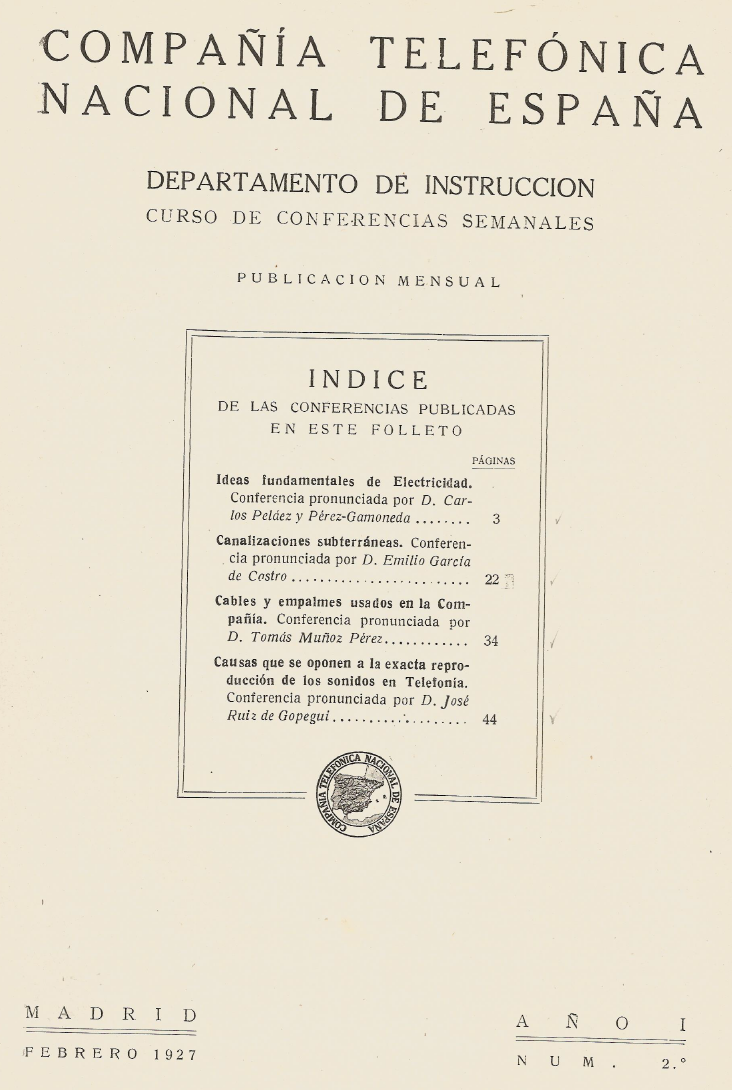 D. Carlos Peláez Pérez-Gamoneda. “El Proyecto de Red Nacional de Energía Eléctrica desde el punto de vista de las comunicaciones telefónicas comerciales” (30/9/1927)