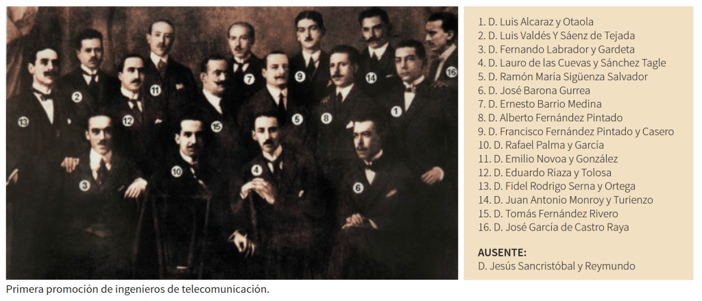Como es lógico, la mayoría procedían del Cuerpo de Telégrafos, y entre ellos están casi todos los ingenieros de las primeras promociones de la Escuela Oficial de Telegrafía, precursora de la de Ingenieros de Telecomunicación. En concreto de entre los 26 primeros titulados como Ingeniero de Telecomunicación en España en 1921, de los que justamente celebramos el primer centenario, participaron como conferenciantes al menos ocho de ellos, siendo otros también empleados de la CTNE, como el que fue el número 1 de la promoción, Luis Alcaraz Otaola (3).