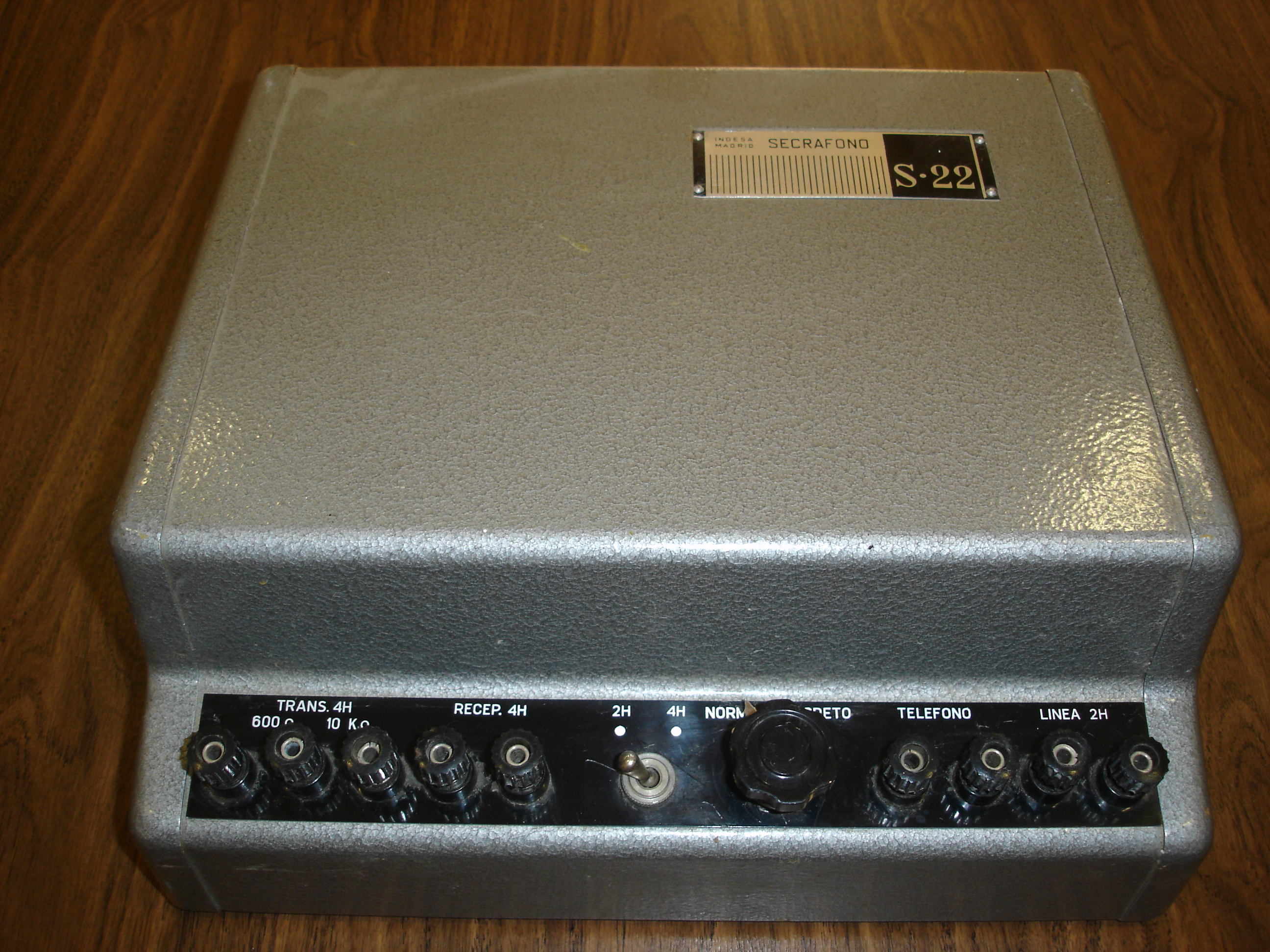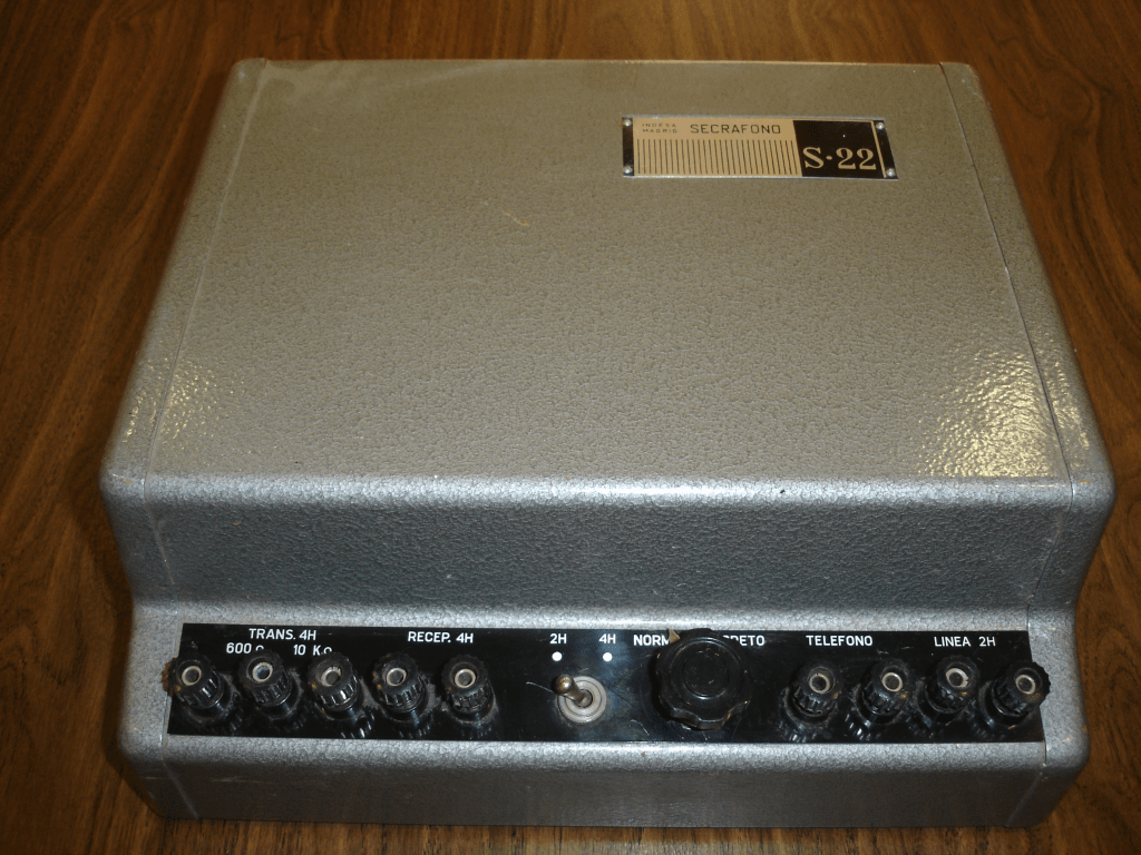 «Secráfono fabricado a primeros de los 60, probablemente en 1962, por la empresa INDESA. Lamentablemente no sabemos más de este aparato. Foto amablemente cedida por Rafael Matilla Páramo.»