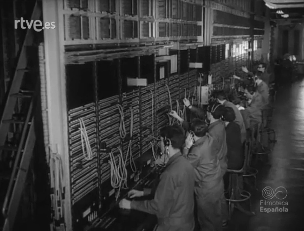 Fotograma del documental «Al Habla la Telefónica» (1:07). Mesa de pruebas interurbana (Fuente: Archivo RTVE y Filmoteca Española)