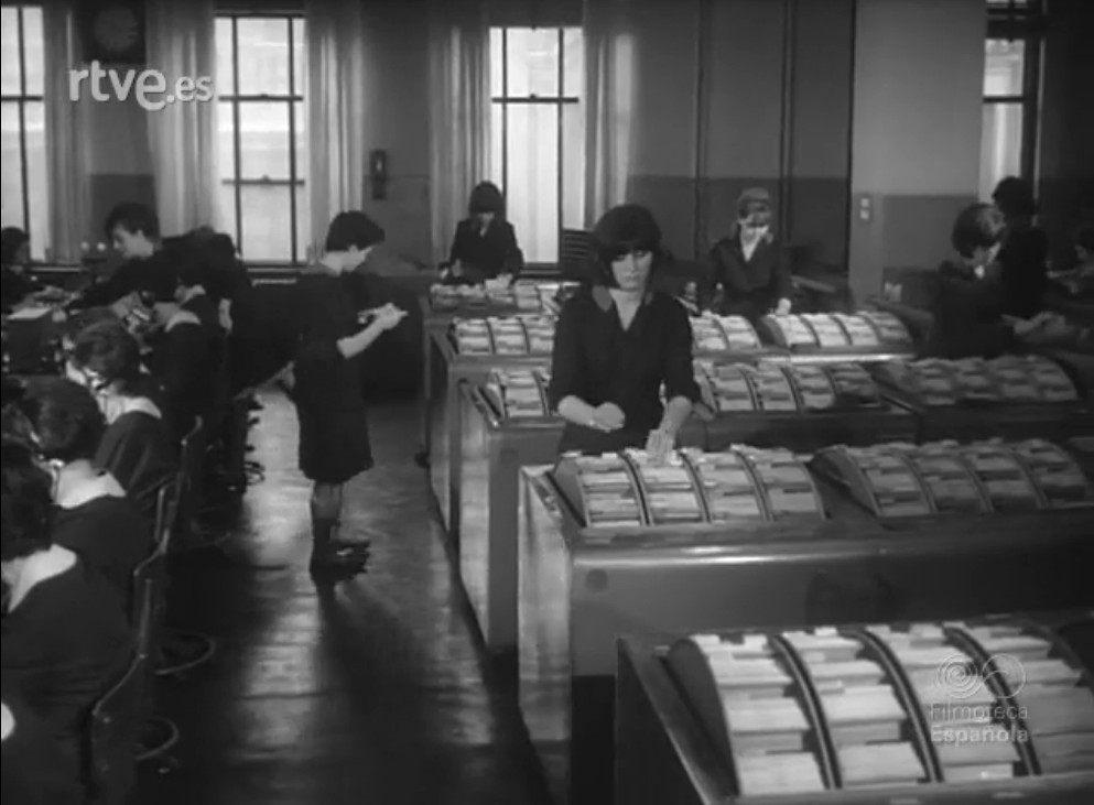 • 1:35 a 3:05 Conferencias interurbanas. Telefonistas en cuadros manuales. Tickets y Calculógrafo.
