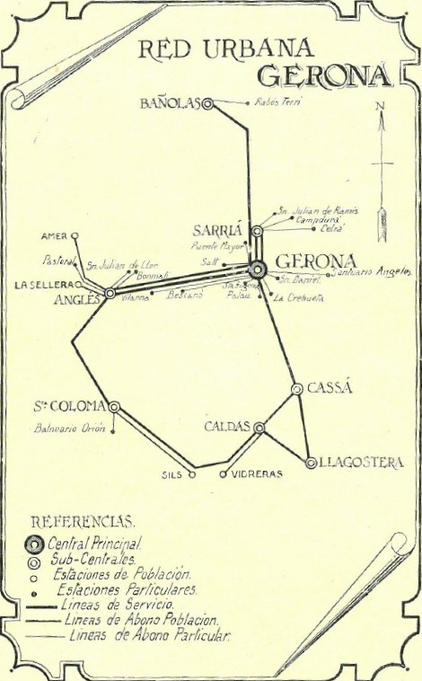 •1914 Se crea la Secció de Telefons de la Mancomunitat de Catalunya; posteriormente el Sr. Alcañiz cederá a la Mancomunitat de Catalunya la red de Figueres, pero no la de Girona.