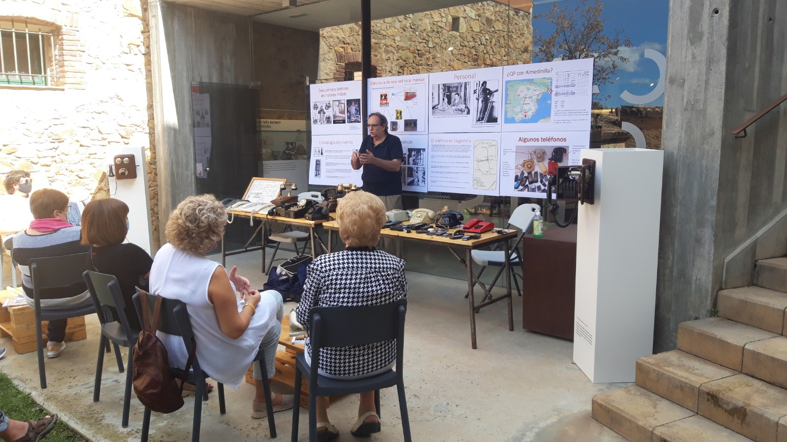 A causa de la pandemia, la inauguración de la exposición quedó algo deslucida; debido a eso se decidió realizar un encuentro, al que fui invitado, en el que los vecinos del pueblo trajeron sus teléfonos y les hablé un poco del inicio del teléfono y de su llegada y evolución en Llagostera.