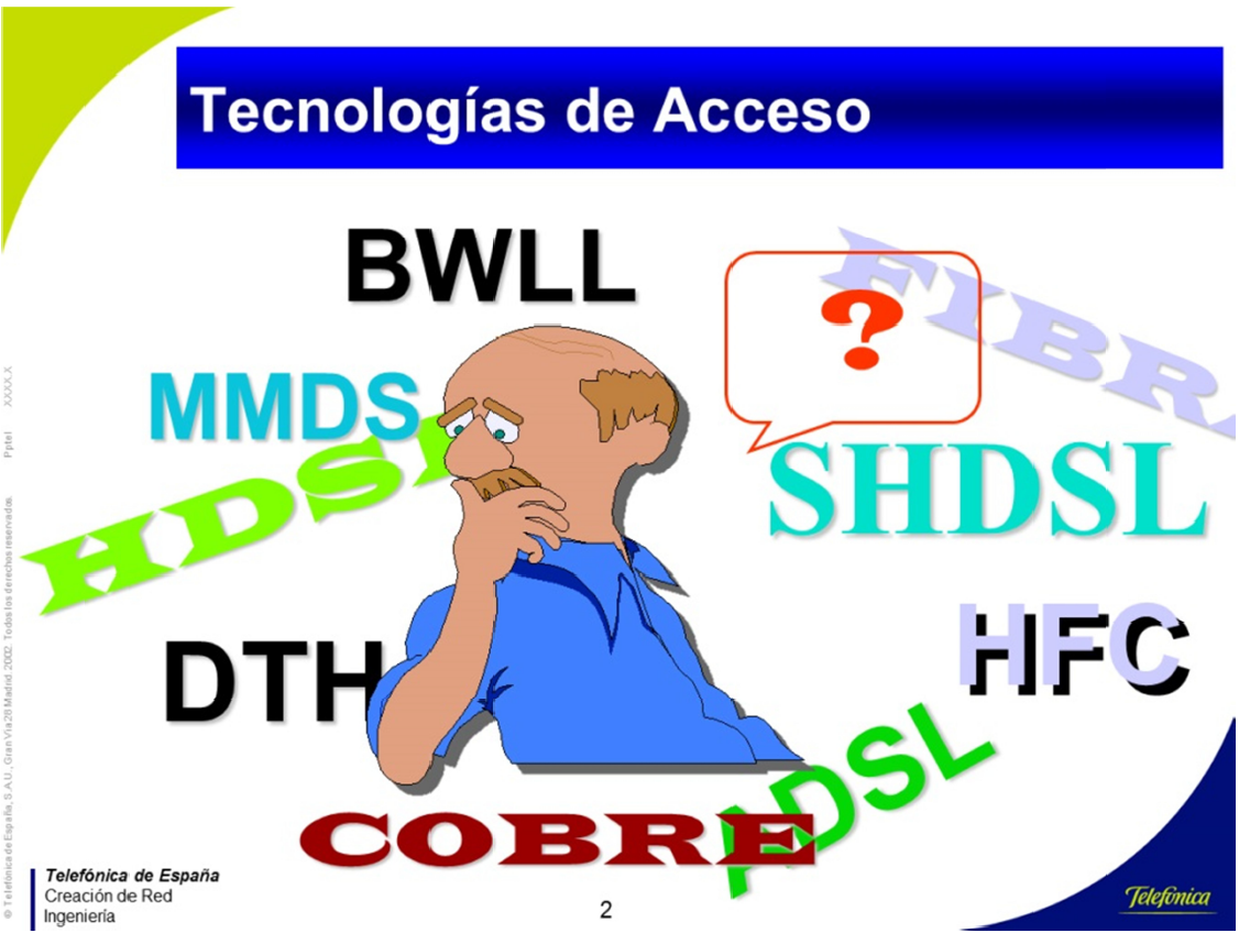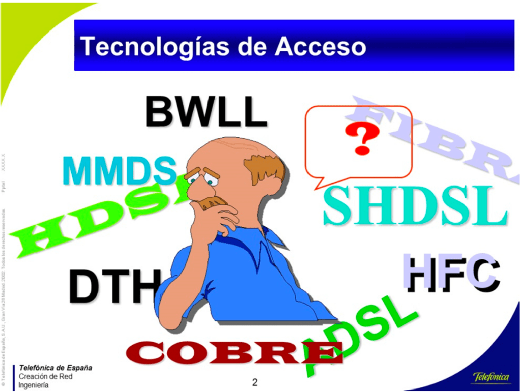 Se presentaba una disyuntiva fundamental ya que Telefónica disponía de una Planta Exterior de Cobre muy importante para la interconexión entre la Red y sus Clientes (que NO abonados, término que se acuñó para los servicios de telefonía. Ese concepto, el de abonado, tenía que cambiar y difuminarse a favor de Cliente/Usuario).