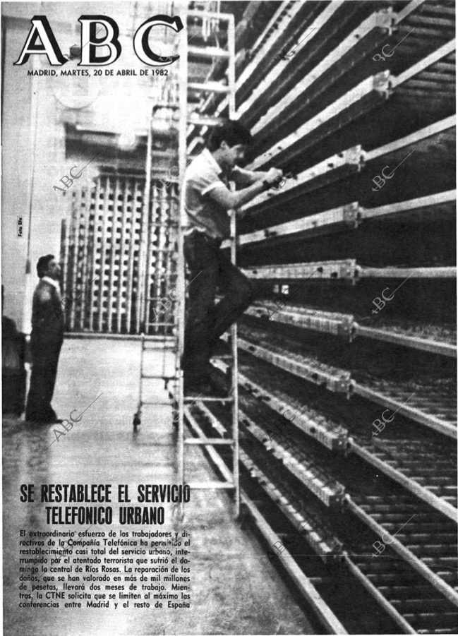 Siguiendo con colaboraciones de profesionales de las telecomunicaciones, os dejamos aquí un trabajo excepcional de nuestro amigo Ernesto López Naveiras sobre un hecho fundamental para la historia de Telefónica, como fue el atentado de la banda terrorista ETA contra el edificio de la central madrileña de Ríos Rosas el 18 de abril de 1982 y los trabajos de días sucesivos para restablecer los servicios de telecomunicaciones afectados. La importancia de la central y el enorme poder destructivo de las explosiones implicó que se vieran afectaron los servicios a nivel nacional, ya que el edificio congregaba centrales telefónicas de tráfico nacional e internacional, así como los equipos de la Red Especial de Transmisión de Datos. Precisamente el relato de Ernesto se centra en este último aspecto, por ser el encargado de dichos equipos, aunque cita también el primero. Por lo tanto, esperamos en un futuro dar cuenta también de estos hechos referidos a la parte de la Red Telefónica, ya que el impacto fue más allá del mero restablecimiento del servicio, al implicar un cambio trascendental en la Planificación de la Red en cuanto al tránsito nacional e internacional. Fue un acontecimiento que trascendió los aspectos puramente técnicos, como dieron cuenta los medios de comunicación de esos días por el intento de ETA de poner en jaque al Estado español atacando a sus infraestructuras básicas. En efecto, fue un acontecimiento triste y doloroso, pero también sirvió para poner en valor el excepcional trabajo y profesionalidad de los técnicos de Telefónica en los días siguientes para restablecer los servicios.