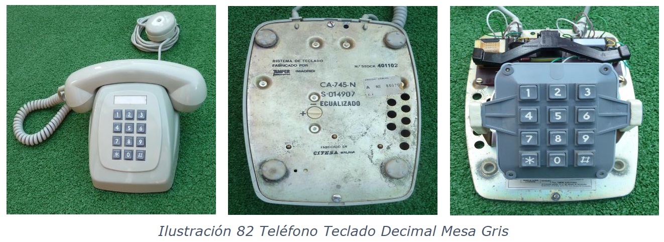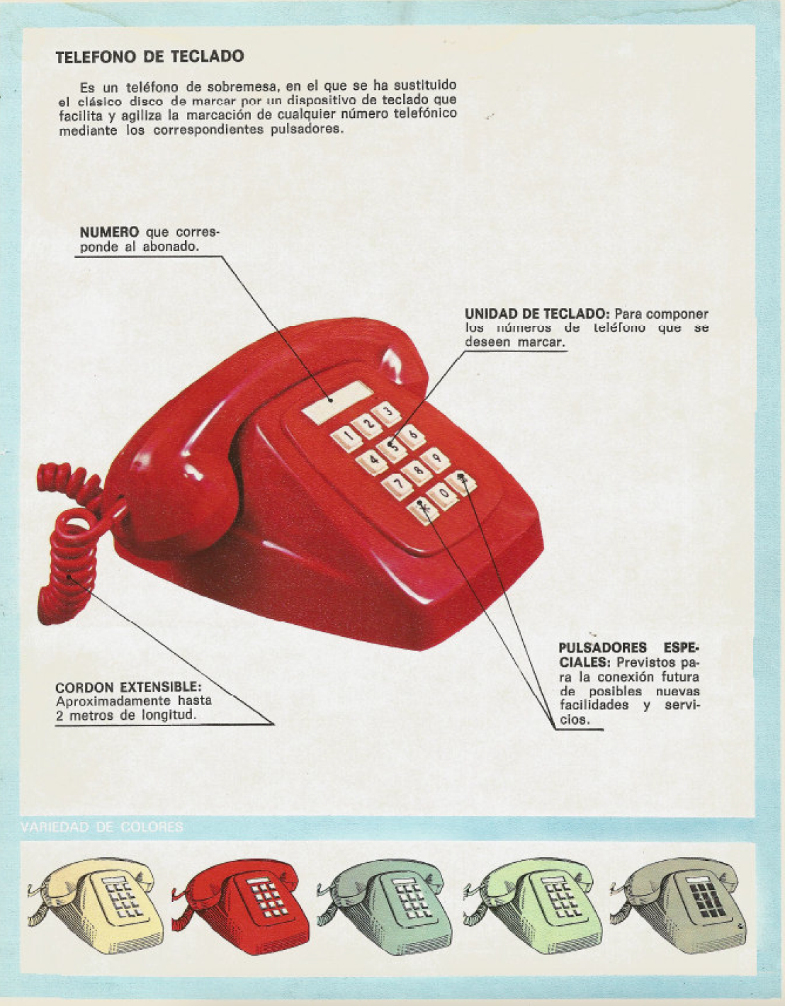 Entre la documentación citada destacamos el pliego de condiciones para los posibles fabricantes del terminal elaborado por la CTNE, nº 715.010, en concreto en 1970 por el entonces Departamento de Planes y Normas, en el que se recogen las características descriptivas del «Teléfono de Teclado de Sobremesa con Marcación decimal en impulsos de corriente continua» y que podéis descargaros aquí.