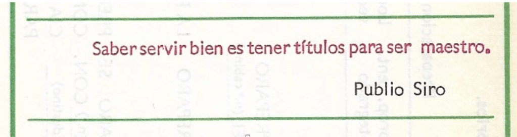 En la primera revisión lo que llama la atención son las citas que se encuentran repartidas por el Manual, 15 en total. Están destacadas en rojo y en cada una se indica el autor de la misma. En la 2ª página viene la primera cita, de Sófocles: “La obra humana más bella es la de ser útil al prójimo”. Una declaración de intenciones, para que no te desvíes de tu objetivo. Por citar a algunos autores de las citas: Bacon, Concepción Arenal, Kant, Cervantes, etc.