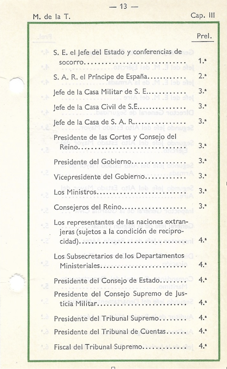 3. Jefes de las diferentes Casas, Presidente del Gobierno, Presidente de las Cortes y Consejo del Reino, Vicepresidente, Ministros y Consejeros del Reino.