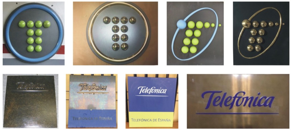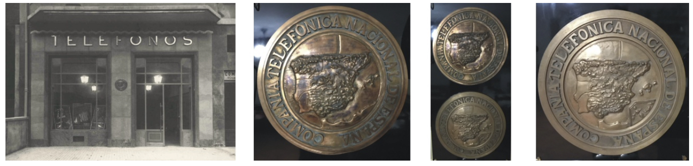 Este cambio también se materializó en las placas que instaladas en los edificios de Telefónica. Esta evolución del logo, se recoge en las imágenes que siguen: