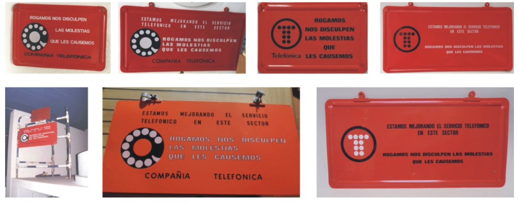 La realización de trabajos en exteriores requería su señalización durante la realización de los mismos, siendo los mostrados a continuación, algunos de los utilizados por los celadores y empalmadores.