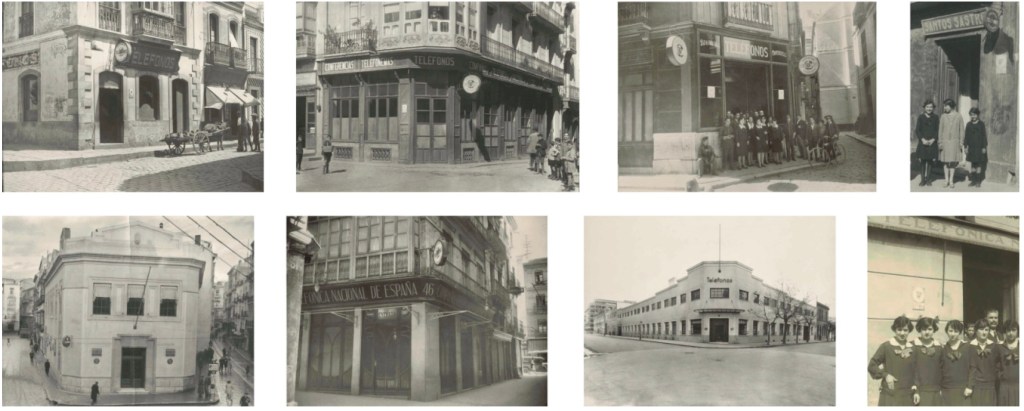 Todas las compañías fueron creando edificios para albergar sus equipos como, por ejemplo, el de la Compañía Peninsular de Teléfonos, en la calle Mayor nº1 de Madrid (véase «De Gran Vía al Distrito C«, capítulo 4.1.3. Arquitectura anterior a CTNE), y no solo sus equipos, sino también locutorios amplios y cómodos para que los usuarios pudiesen esperar cómodamente el establecimiento de sus llamadas por lo que los rótulos indicando las ubicaciones de los mismos comenzaron a proliferar por las calles.