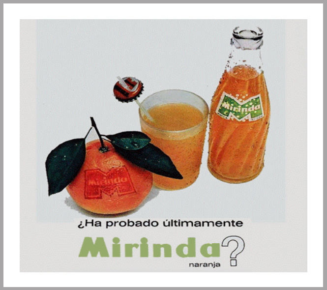 La publicidad que he utilizado ha sido la marca Mirinda, muy conocida en aquella época, que los bien jóvenes disfrutábamos de su sabor.
