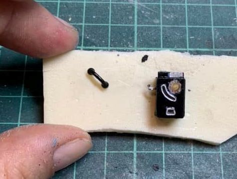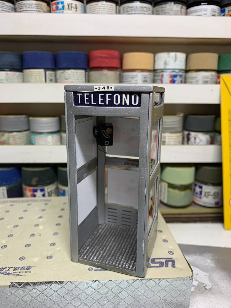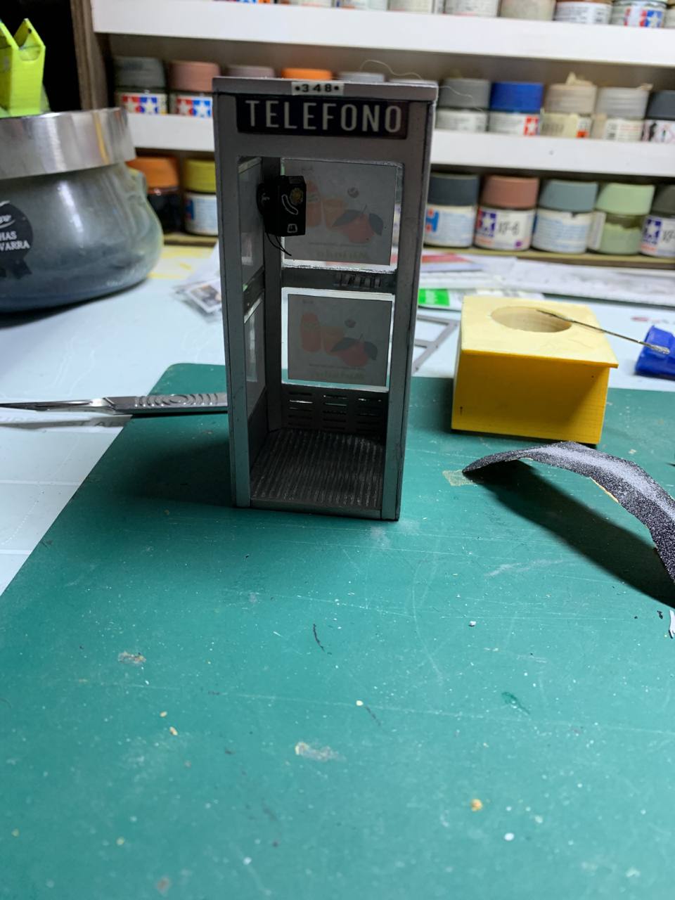 Tanto el teléfono como el auricular se imprimieron en resina, gracias a Miguel Angel de la Calle, compañero y amigo de la misma Asociación donde somos socios, AMEM (Amics del Modelisme Estàtic de Montcada).