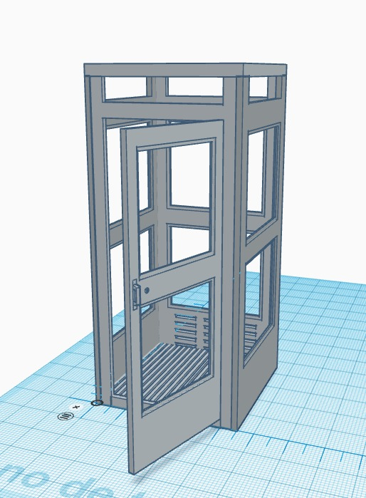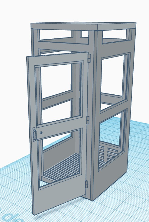 Como dije al principio la viñeta está centrada a finales de los años 60, la cabina que había en esa época era el modelo A con puerta batiente y con solo ventilación en la zona trasera. Las medidas las he tenido que sacar mediante fotos y con figuras al lado de la misma escala ya que no he podido conseguir medidas reales.