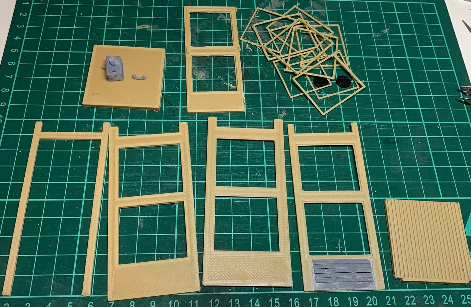 La impresión de la cabina fue a cargo de mi amigo y socio de AMEM, Miguel Angel de la Calle. La impresora utilizada es de filamento y en este caso se usó filamento de plástico y madera para que luego fuera más fácil el lijado. Se decidió realizarlo por piezas para que a continuación fuera más fácil colocar los distintos vidrios, rotulación y elementos interiores. Solo la zona de ventilación se ha impreso mediante impresora de resina.