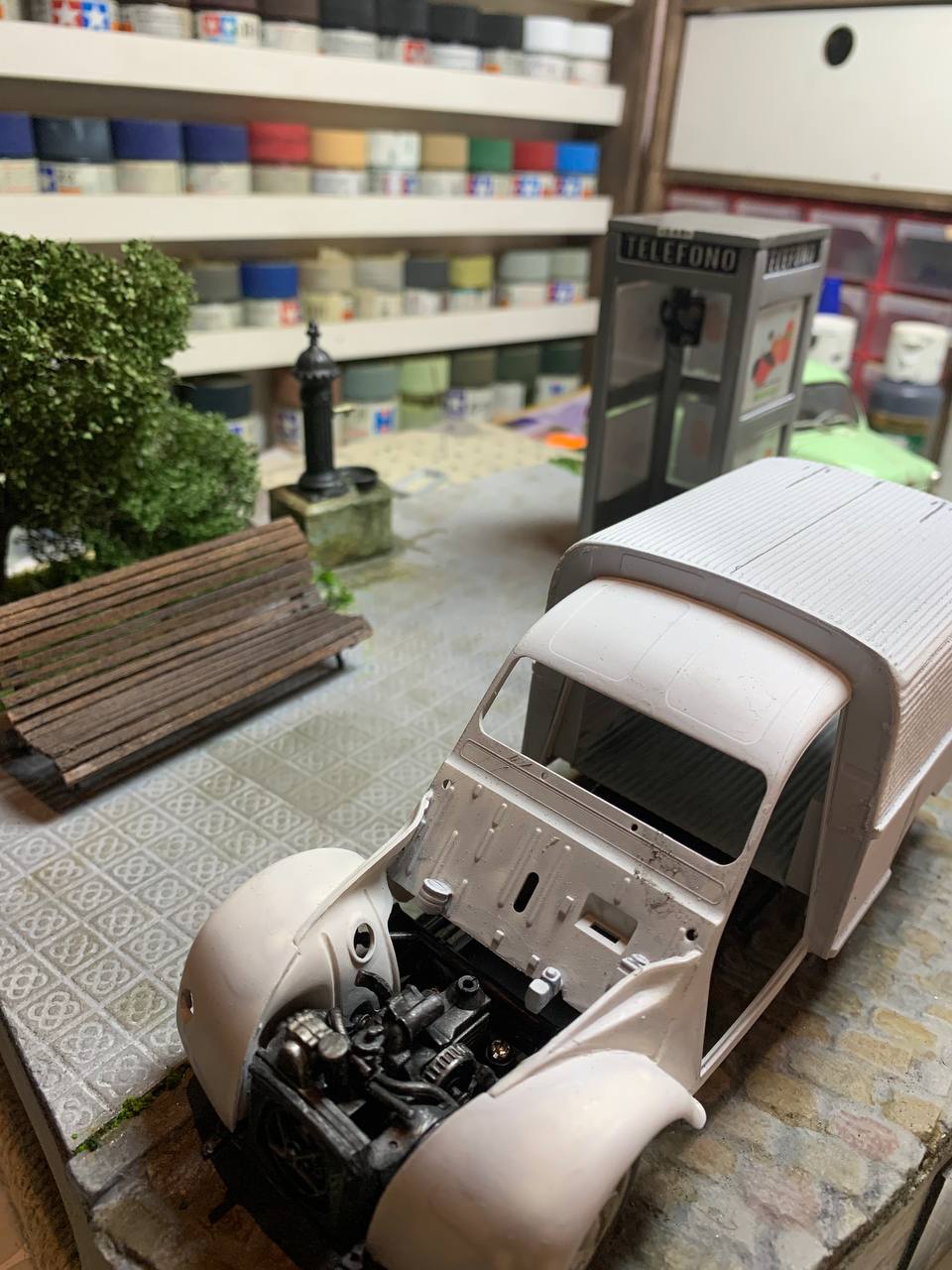 A falta de completar el Citröen 2CV y los peatones y quizás algún detalle final, la viñeta está casi completa, en las vistas siguientes se puede ver el estado.
