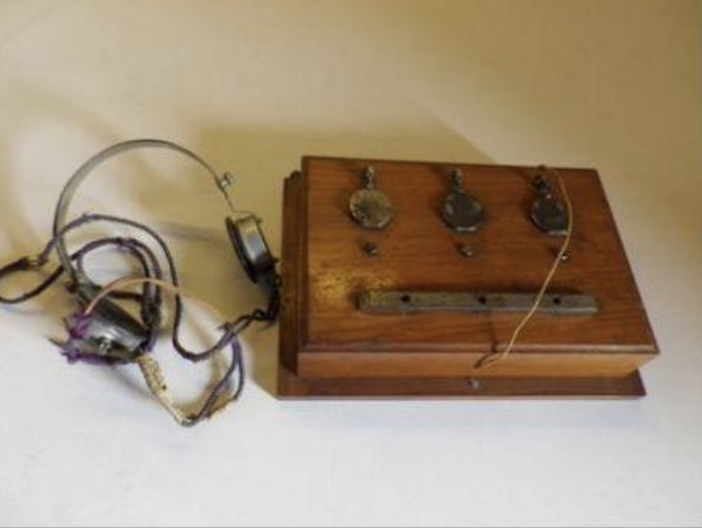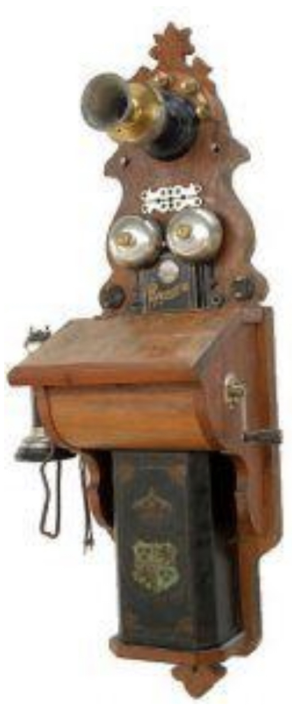 Figura 1. Derecha, equipo LM Ericsson, modelo AB 505. ca. 1900, Izquierda centralita de 3 enlaces, La Palma ca. 1905. Debajo, teléfono de manivela (ca. 1910). Fuente: http://www.ericsson.se, POGGIO (2013) y Museo León y Castillo de Telde, foto del autor.