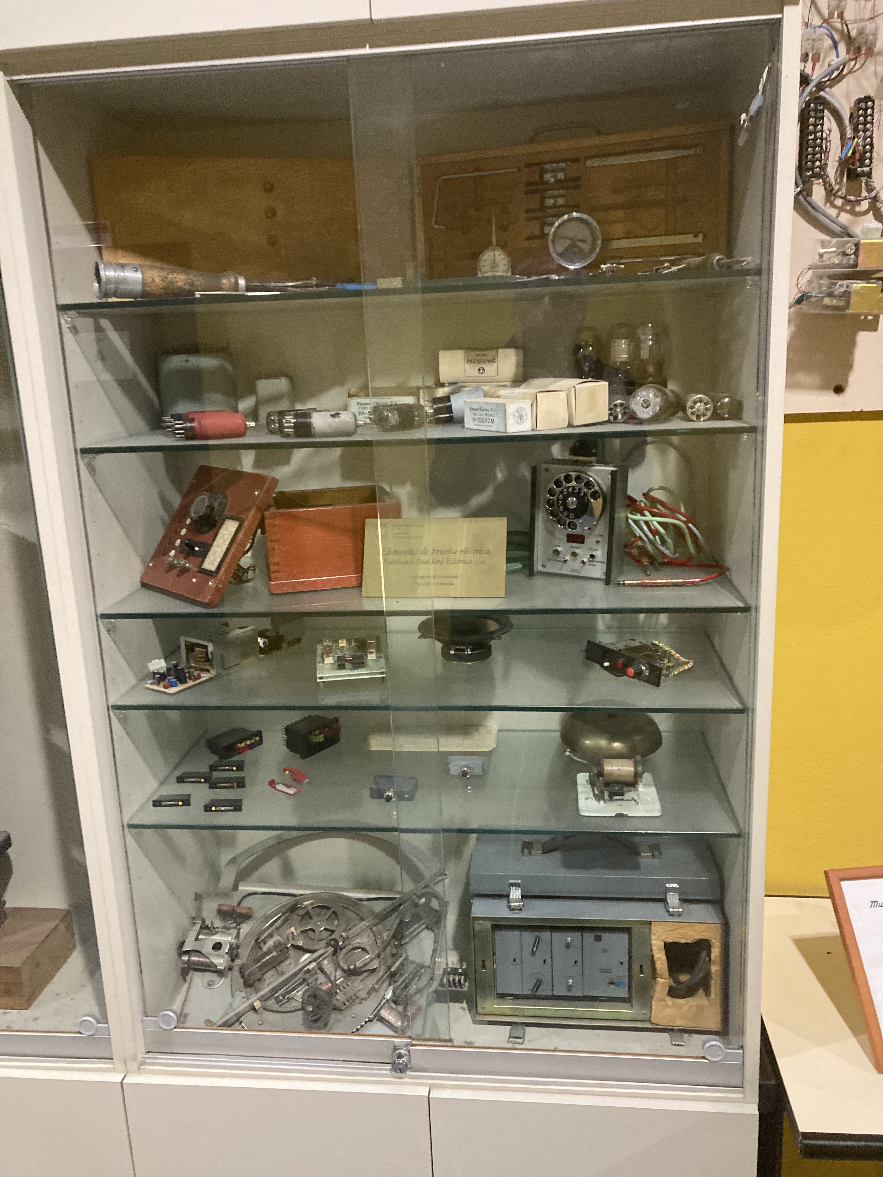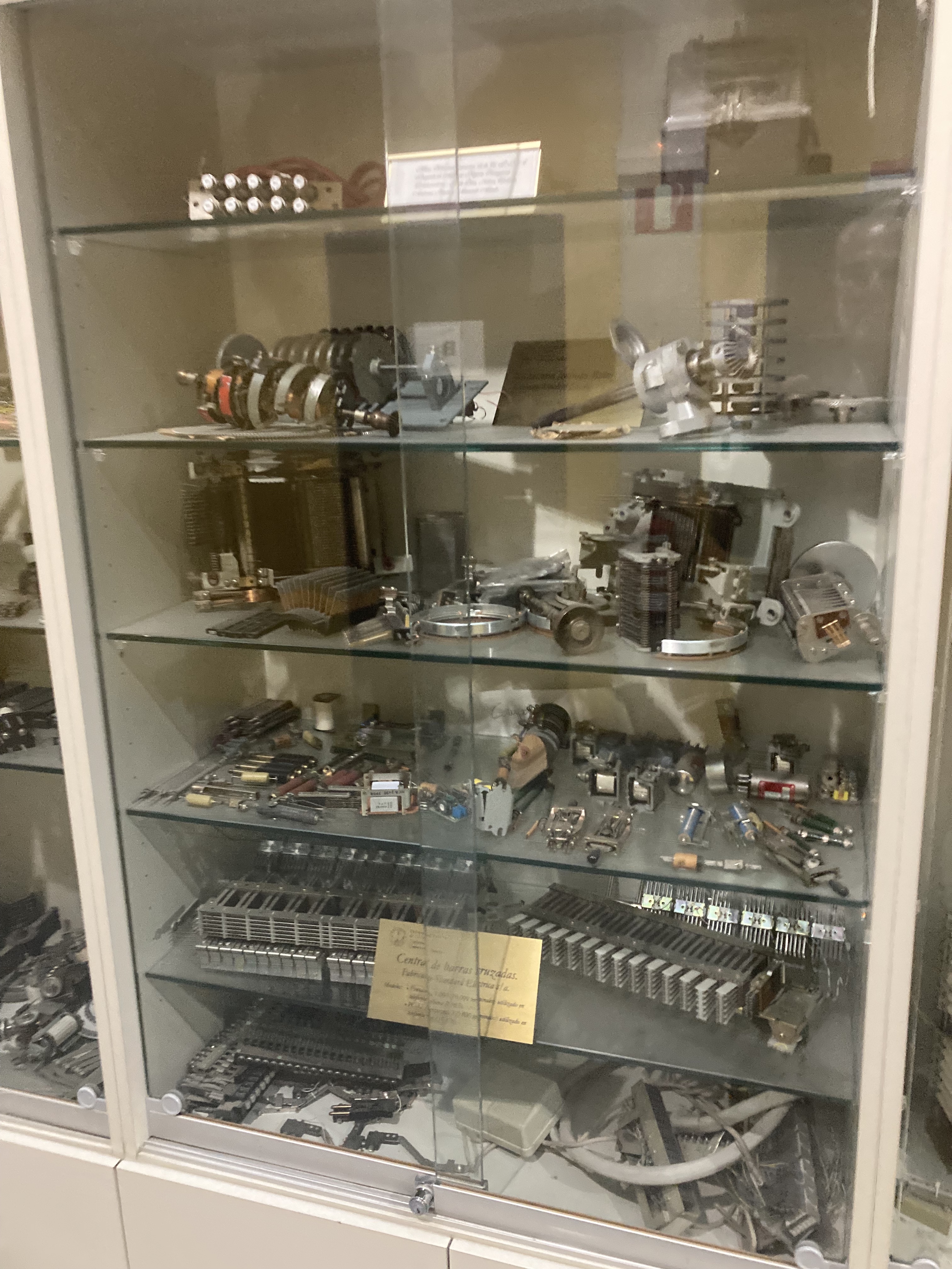 En las diferentes vitrinas podemos ver gran cantidad de elementos pertenecientes a diferentes equipos. Muchos de ellos necesitan una identificación más precisa que podía ser objeto de un buen trabajo de Fin de Grado… de una optativa sobre la Historia de las Telecomunicaciones… ¡ahí lo dejamos!