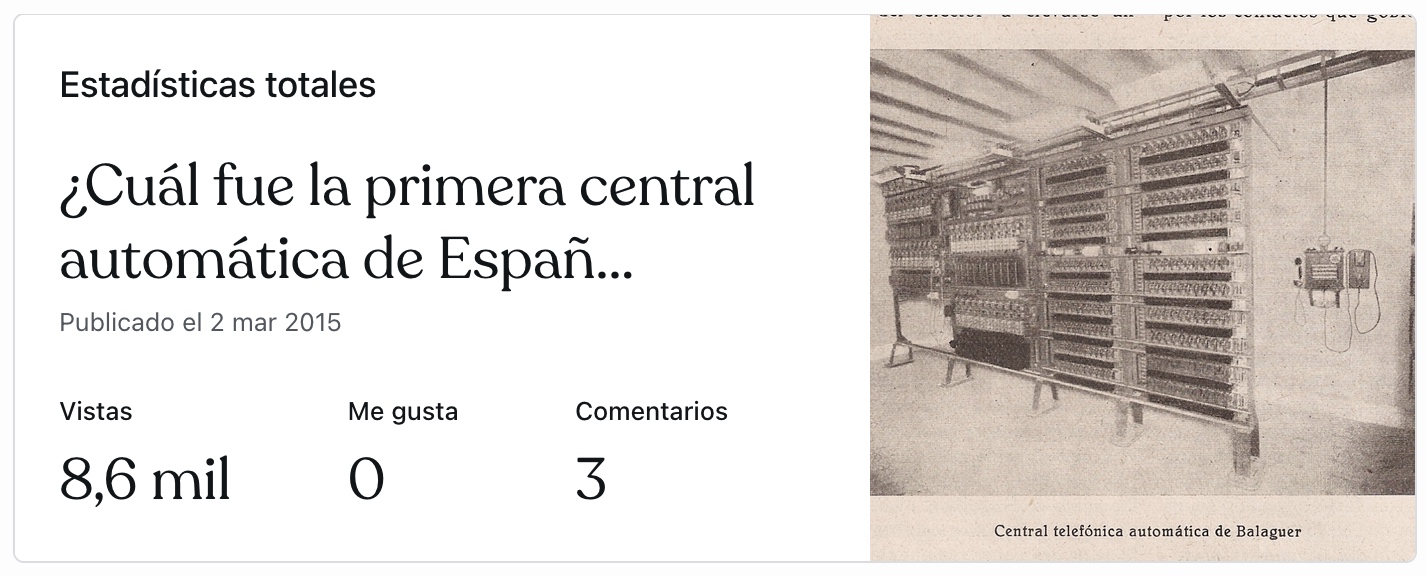 Con 9.500 visitas, en noveno lugar, ¿Cuál fue la primera central automática de España?, entrada que pretende aclarar las dudas existentes al respecto.