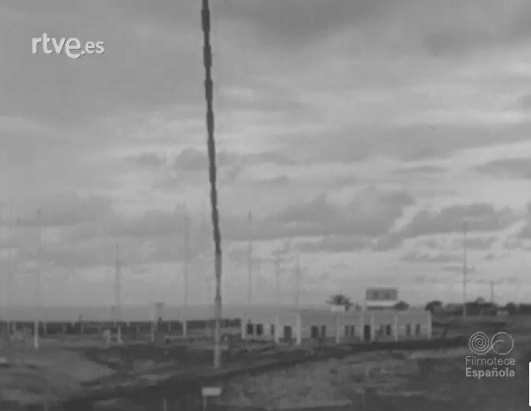 Posteriormente en los años 50, se renuevan las instalaciones para lo que se derriban los primeros mástiles como queda recogido en el que quizás sea uno de los documentos audiovisuales más antiguos localizado, el noticiario del NO-DO número 675B de diciembre de 1955, «Derribo de un mástil de Transradio Española en Guanarteme», (…) realizados por David J. Nieves.” que podemos ver en las primera secuencias en este enlace.