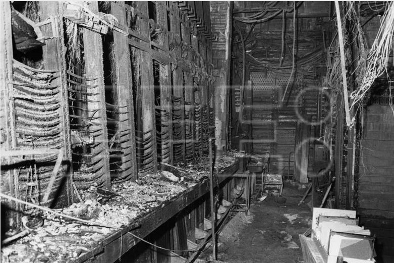En mi comentario anterior me quedé corto. Las mesas de pruebas de averías (primera planta) quedaron de pena pues recibieron toda el agua que tiraron los bomberos. Instalaron unos gigantescos extractores para sacar la humedad y el humo que jabia.