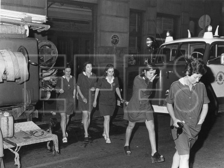 La plaza Cataluña se volvió un espectáculo, y sin un duro para volver a casa, yo no recuerdo para coger el metro, y cuando llegué a casa afortunadamente no se habían enterado, el incendio fue el día 8 de junio y el 28 de mayo, había nacido una sobrina, y el día 10 nació un sobrino, vivíamos todos juntos, así que imagínate los pañales que lavé.
