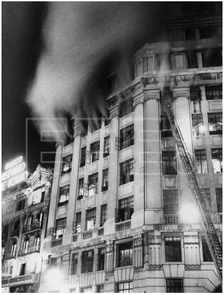 Con respecto al relato de Juan Rubio, que corroboro en su totalidad, tengo que decir que si había escalera de incendios en la central Cataluña. Bajaba hasta el patio del edificio contiguo de calle Fontanela. Por allí se evacuó a todo el personal posible.