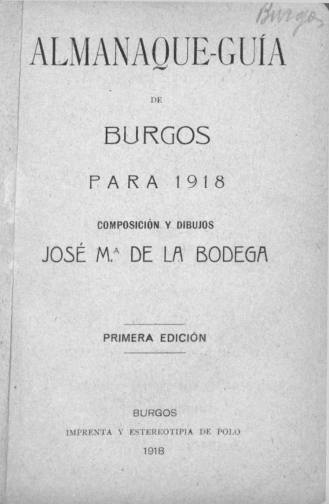 Aunque los primeros teléfonos se instalaron en Burgos a partir de 1891 con la concesión a José Rivas Borollo primero, y después, en 1903, a J. Ahlemeyer Flocek, la primera guía o directorio que hemos encontrado es un «Almanaque-Guía» de 1918, editado por José María de la Bodega. La publicación generalizada de guías telefónicas, como tal, no se estableció propiamente hasta la llegada en 1924 de la nueva Compañía Telefónica Nacional de España.