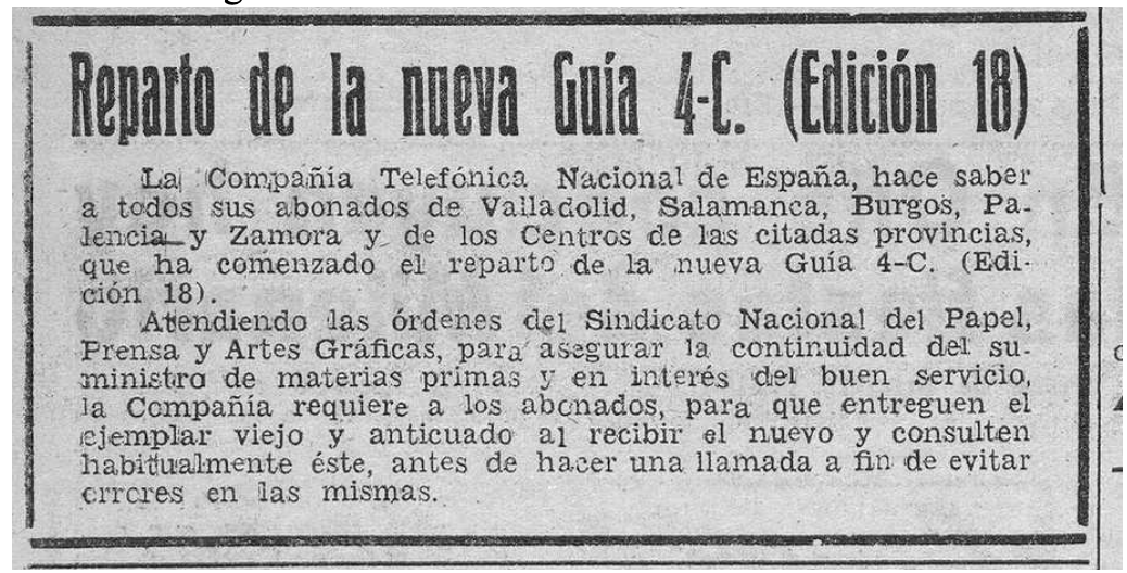 En 1943 y 1945, aparece la agrupación 4-C ¿¿Cuarto Distrito o Centro?? y se editan nuevas guías, la edición 18, en 1943 para Valladolid, Salamanca, Burgos, Palencia y Zamora.