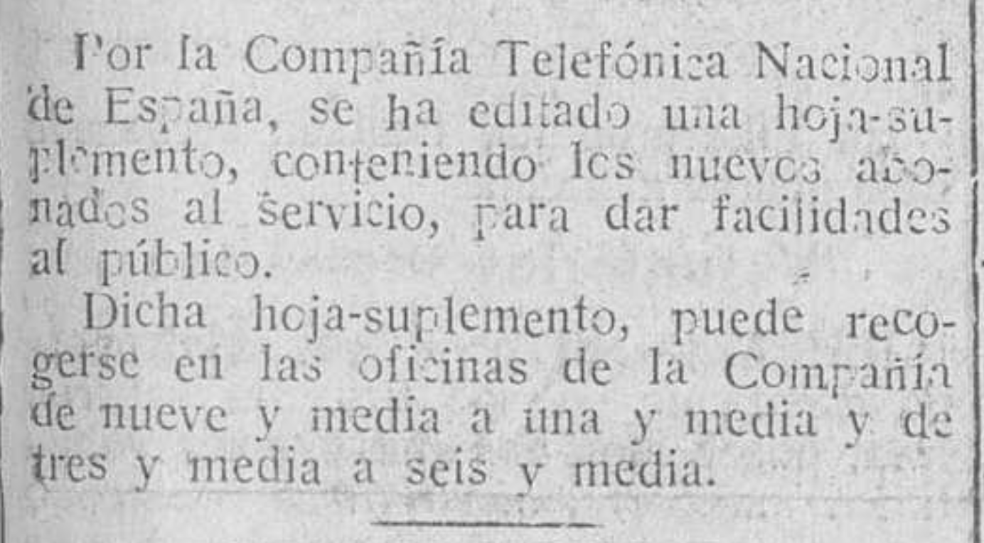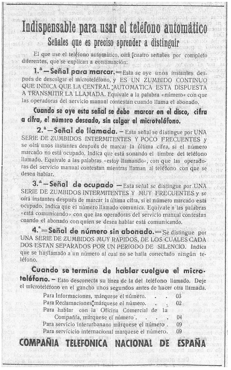 Esta «novedad» trajo consigo: Cambios de numeración… etc. Instrucciones de manejo y uso del «automático», etc, como se complementa y se trata más ampliamente en las sucesivas notas y artículos publicados en el mismo diario en fechas siguientes.