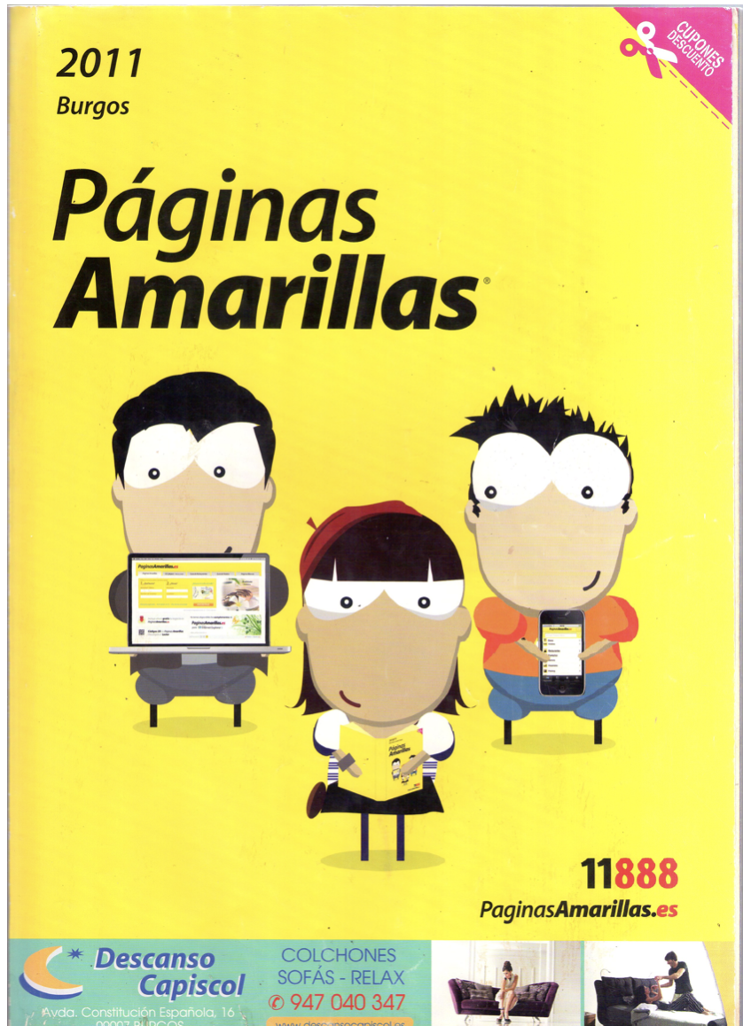Varias portadas de Páginas Amarillas y Blancas de Burgos de los años 2011, 2012 y 2020.